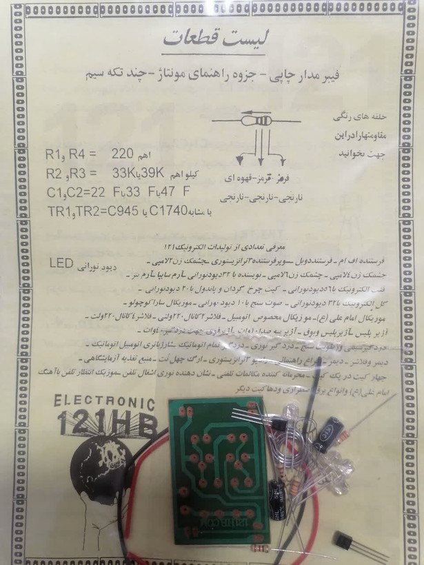 کیت چشمک زن 4 لامپی چهار LED این کیت در گوشهها فیبر قرار دارند و این کیت يكي از كيتهاي سادهاي است كه براي شروع لحيم کاری مناسب است و همچنین برای آشنایی با نحوه عملکرد قطعات مناسب است.